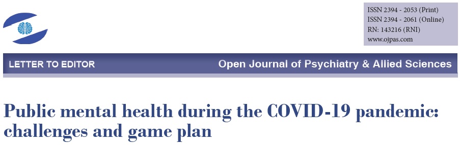 “Public mental health during the COVID-19 pandemic: challenges and game plan” by Bemma Konthoujam is the new Advance Online Publication of the Open Journal of Psychiatry & Allied Sciences (OJPAS®).