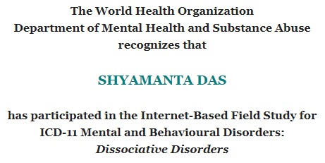 Shyamanta Das, the Editor-in-Chief of the Open Journal of Psychiatry & Allied Sciences (OJPAS®) has participated in the Internet-Based Field Studies for ICD-11 Mental and Behavioural Disorders as a member of the Global Clinical Practice Network (GCPN) in order to ensure that the next diagnostic manual is clinically useful and accurate in mental health settings around the world.