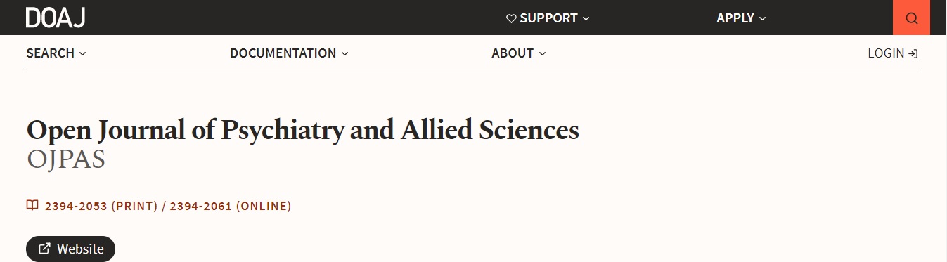 The articles of the January-June 2021, Volume 12 Issue 1 of the Open Journal of Psychiatry & Allied Sciences (OJPAS®) are indexed in the Directory of Open Access Journals (DOAJ).