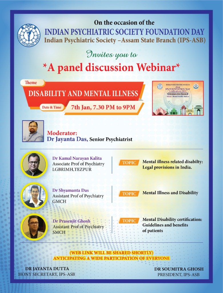 On the occasion of the Indian Psychiatric Society (IPS) Foundation Day, the Editor-in-Chief of the Open Journal of Psychiatry & Allied Sciences (OJPAS®), Shyamanta Das spoke on ‘Mental illness and disability’ in a panel discussion webinar, organised by IPS-Assam State Branch.