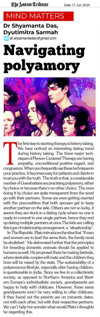 This fortnight’s Mind Matters column in Horizon, the Monday supplement with The Assam Tribune by the Editor-in-Chief of the Open Journal of Psychiatry & Allied Sciences (OJPAS®), Shyamanta Das and Dyutimitra Sarmah is titled, “Navigating polyamory.”