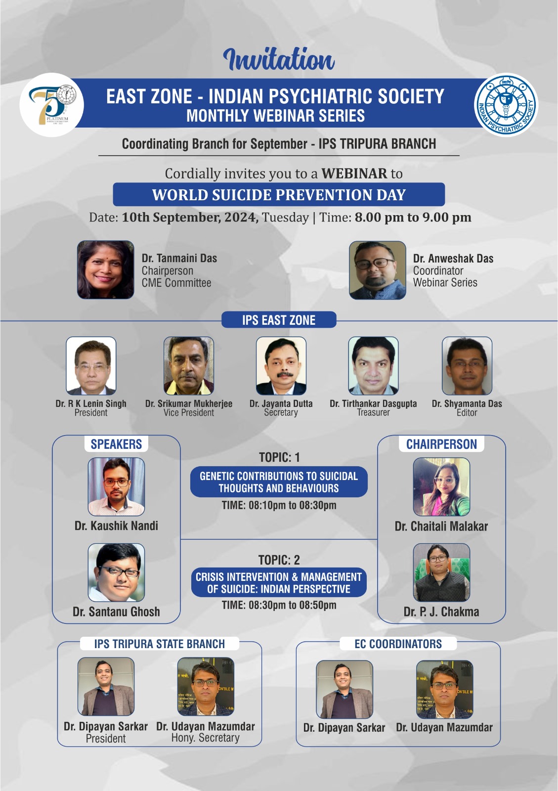 The Editor-in-Chief of the Open Journal of Psychiatry & Allied Sciences (OJPAS®), Shyamanta Das attended the East Zone – Indian Psychiatric Society (IPS) monthly webinar series (Coordinating Branch for September – IPS Tripura Branch) on World Suicide Prevention Day as Editor, IPS East Zone.