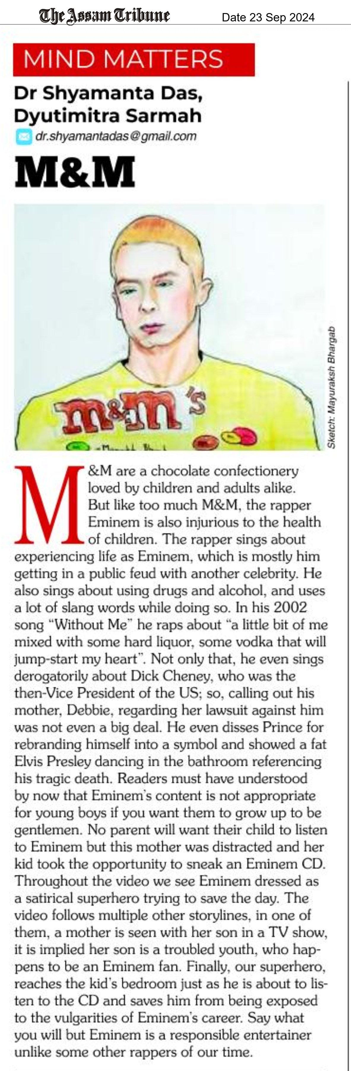 This fortnight’s Mind Matters column in Horizon, the Monday supplement with The Assam Tribune by the Editor-in-Chief of the Open Journal of Psychiatry & Allied Sciences (OJPAS®), Shyamanta Das and Dyutimitra Sarmah is titled, “M&M.”