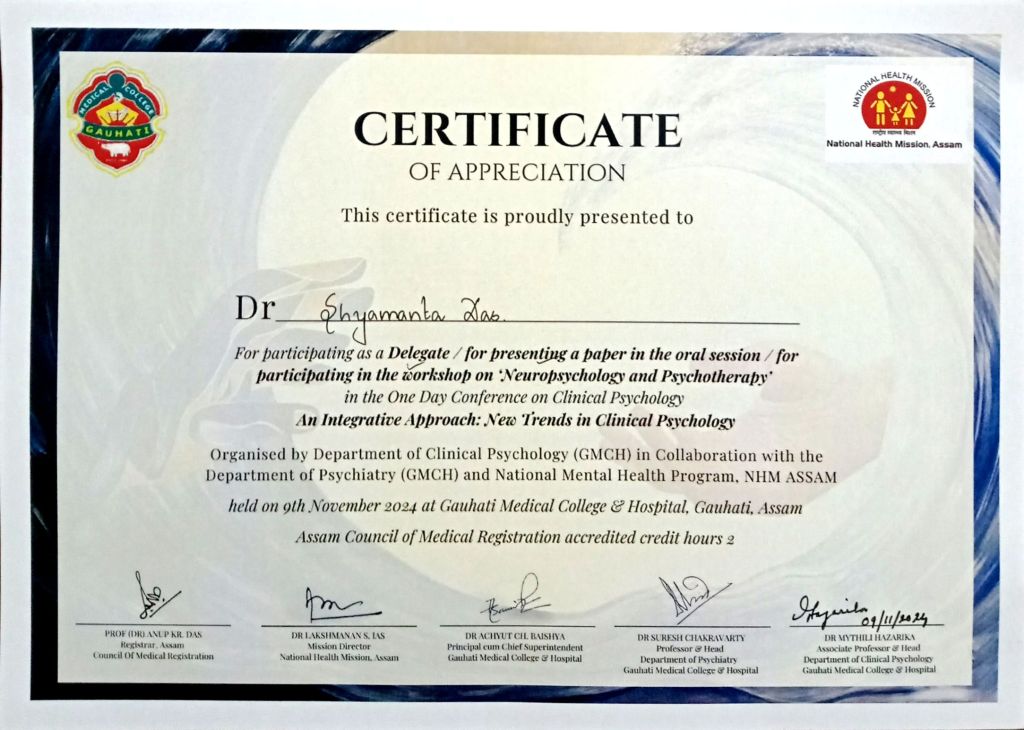Shyamanta Das, the Editor-in-Chief of the Open Journal of Psychiatry & Allied Sciences (OJPAS®) presented a paper, titled “Affective, Behavioural, and Cognitive Disorders (ABCD) of Childhood and Adolescence: Renaming and Regrouping” in the Conference on Clinical Psychology (ConCP) at Gauhati Medical College & Hospital, Guwahati, Assam, India.