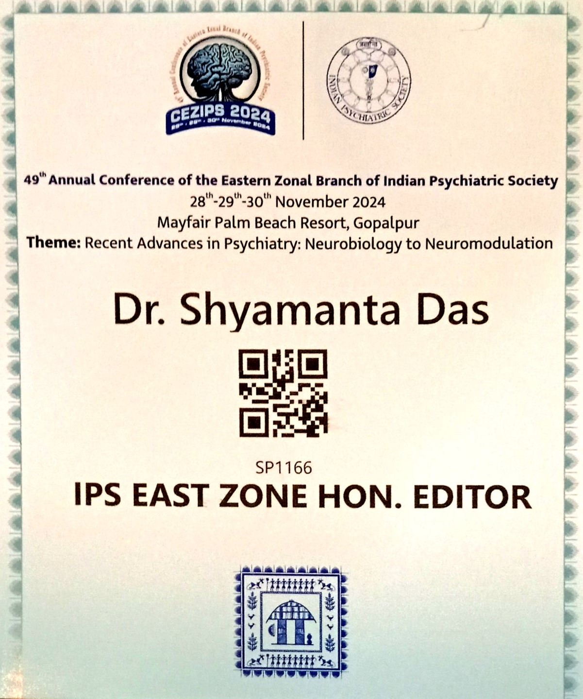 The Editor-in-Chief of the Open Journal of Psychiatry & Allied Sciences (OJPAS®), Shyamanta Das judged the Leelabati Bholanath Award and Dr. Siddhartha Memorial Award in the 49th Conference of Eastern Zonal Branch of Indian Psychiatric Society (CEZIPS 2024) at Mayfair Palm Beach Resort, Gopalpur, Odisha.