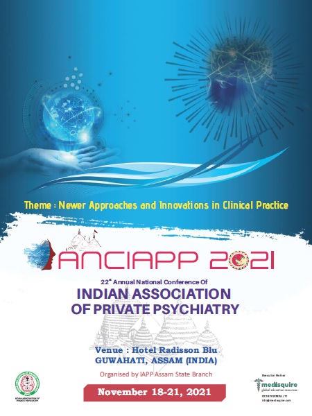 The 22nd Annual National Conference of the Indian Association of Private Psychiatry (ANCIAPP 2021) is going to be organised by the IAPP Assam State Branch in Hotel Radisson Blu, Guwahati with the theme of “Newer Approaches and Innovations in Clinical Practice” during 18-21 November 2021.